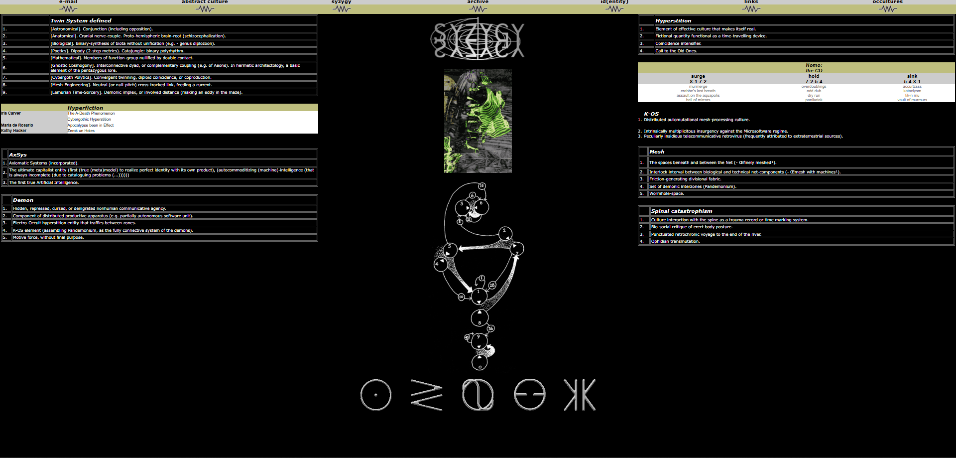 The cybernetic culture research unit (CCRU) (wikipedia here) is something I heard about quite recently. At the time of writing this, it's my current hyperfixation. They have a bunch of cool works and it's a great idea to read some of their stuff. They disbanded in the early 2000s. They were a group comprised mainly of accelerationists. Most of what they wrote seems to be tightly integrated and a large aspect of hacker culture. If you're into cyberpunk, occultism and philosophy, it's for you.
